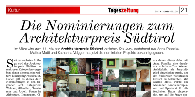 Die Nominierungen zum Architekturpreis Südtirol